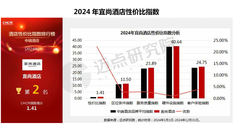 中端酒店品牌案例分析:宜尚酒店位列2024年中端酒店性价比指数榜单第二名。在服务质量指数方面,宜尚酒店优势明显。无论是标准化服务流程的严格执行,还是个性化需求的灵活响应,宜尚酒店均实现了对住客服务预期的精准匹配与超预期满足,强化了品牌服务口碑。