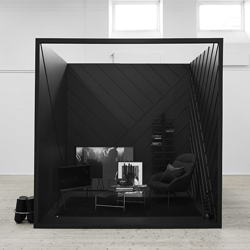 而在黑色主题的电视房,一把为瑞典品牌 Fogia 设计的 Sling 休闲椅颇为抢眼,搭配 Bouroullec 兄弟去年为三星设计的衬线电视,更是提升了整体空间的格调。