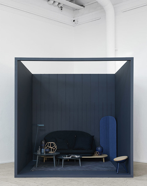 同样是为 Fogia 设计的 Rise 沙发,则出现在蓝色主题的起居室内。