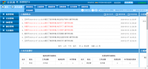 系统介绍:全房通是重庆航畅科技有限公司开发的一款租赁管理平台。提供房源管理+办公管理的解决方案。全方通有PC端系统、手机APP、微信、中介APP,也可根据用户需求定制开发。