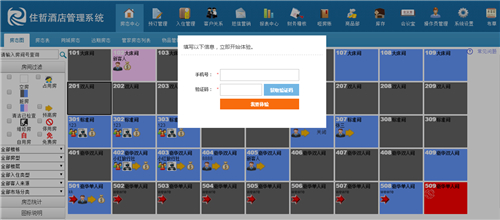小编体验:有快捷试用版,需要填写手机号及验证码、酒店名称及类型、城市、QQ号,邀请码等,注册流程较复杂。但系统功能较为强大,房态、预定、入住、客户关系、报表、账单、会议等全覆盖。