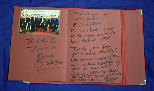 南非总统祖马先生对于饭店服务给予高度赞誉
