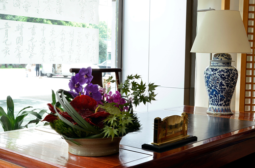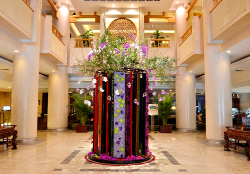 造型别致的G20主题中心花艺“澜岸栖亭”