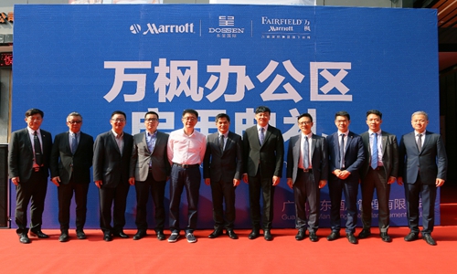 东呈国际集团高管与万豪国际集团高管在万枫办公区启用典礼上合影