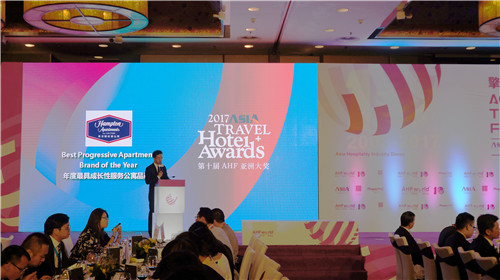 9月20-21日,在第十届AHF国际投资峰会在北京盛大举行。800位来自世界各地的行业精英共聚一堂,以开放的对话和交流,共同探讨行业发展前景与趋势。同期举行的AHF亚洲大奖对行业的优秀企业和精英人物进行了表彰。希尔顿欢朋公寓荣获“年度最具成长性服务公寓品牌”大奖,同时,铂涛集团希尔顿欢朋(中国)总裁王伟女士被授予2017AHF中国酒店及旅游业“新木兰”称号。