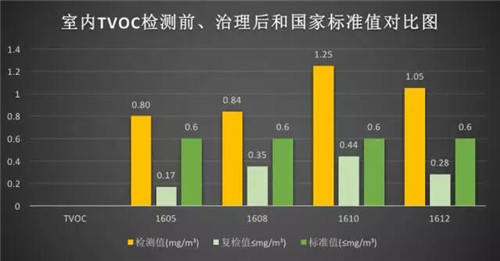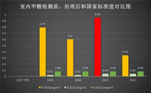 通过大量试验数据分析显示,经过莱恩创科治理后的甲醛浓度得到大幅降低,并已达到国家标准。