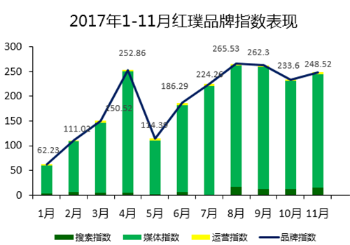 2017年红璞公寓迈点品牌指数MBI表现,数据来源:迈点研究院