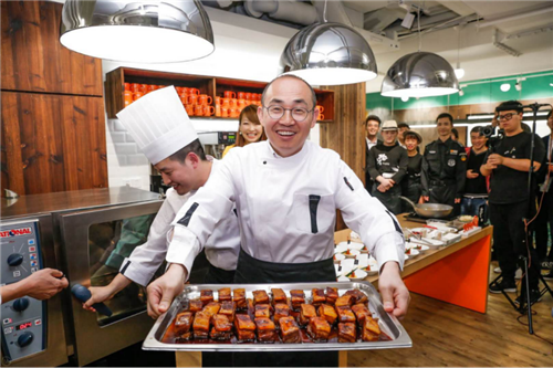 首次在杭州落子,在活动接近尾声时,潘石屹与吴国平一起为杭州的朋友们做了一道红烧肉,小秀了一把潘式厨艺。这道红烧肉大有来头,所选用的猪肉出自网易丁磊养的“味央猪肉”。为杭州的朋友们献上一道杭帮菜,也算是老潘来杭州的诚意之表。