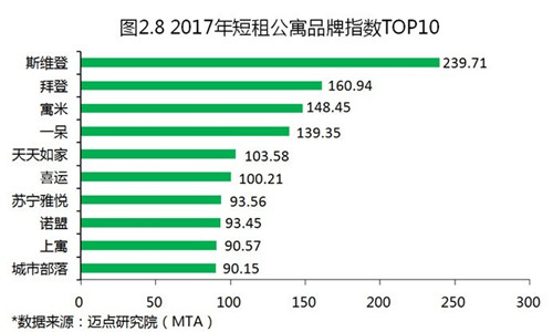 斯维登公寓位居“2017年短租公寓品牌指数MBI榜单”第一