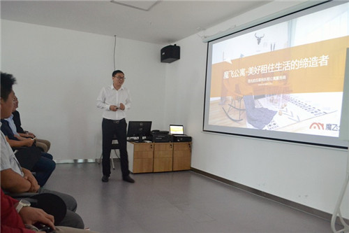 参观完毕后,魔飞公寓CEO刘达就魔飞公寓目前的项目运营做出了详细的介绍,并与各专业公司领导及代表进行了深度沟通。刘达介绍:“魔飞公寓自成立以来,目前运营管理团队已达二百多人、房源规模近万间、服务上万名租客,房源规模已基本实现了对郑州区域的全覆盖,同时魔飞公寓首创PMS智能公寓管理系统,实现了从预约看房、签约缴费到租后服务,线上线下业务深度融合,坚持将用户体验放在第一位。”魔飞公寓作为一家具有深刻互联网基因的公寓运营商,各专业公司负责人对于魔飞的互联网运营理念也十分认同。