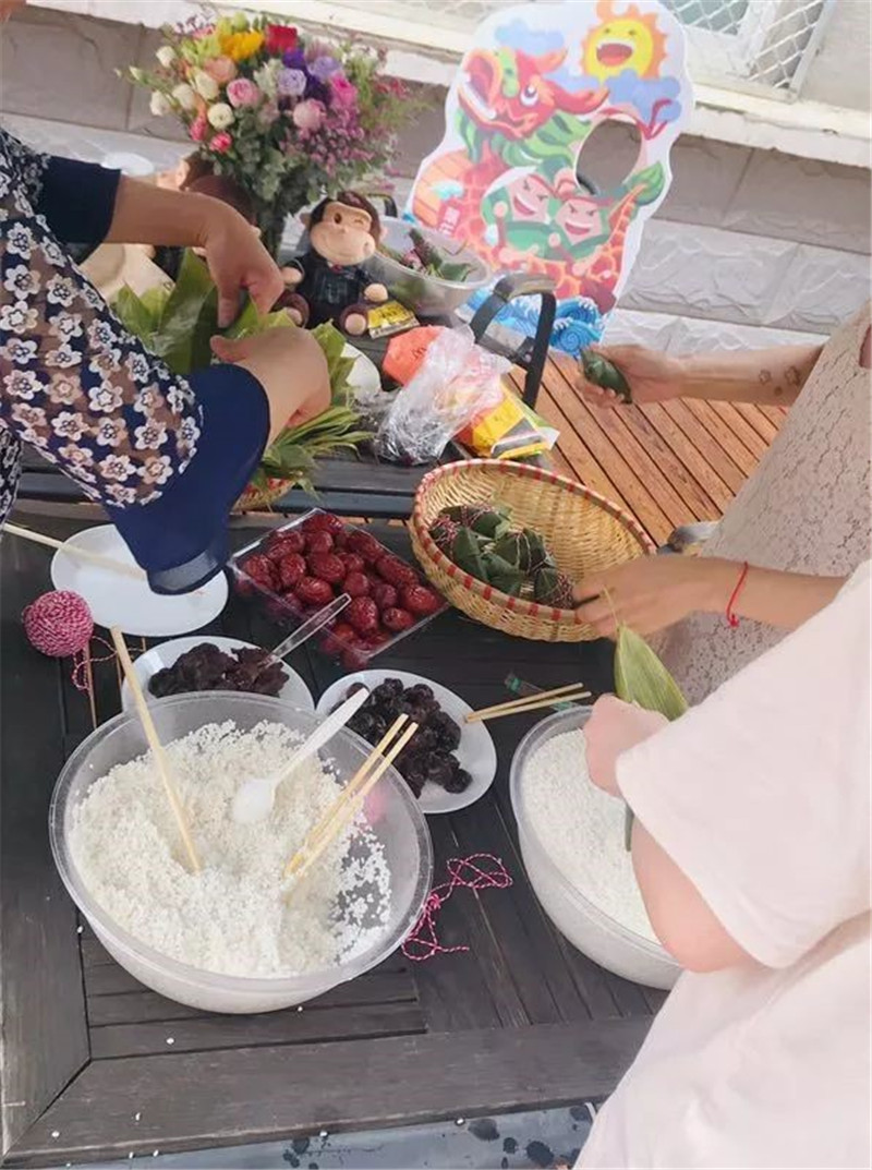 老住户一人包一筐也不是事儿~还一起和新派公寓工作人员,回忆起了小时候吃粽子的趣事~