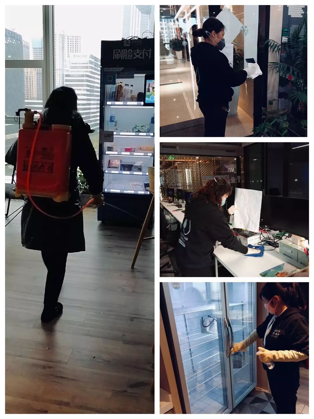 梦想加将对空间进行每天多次无死角消杀工作。除了各功能区域、工作区域外,开关按钮、电梯按钮、打印机、微波炉等经常被人触碰的地方,更将进行高频次消毒。