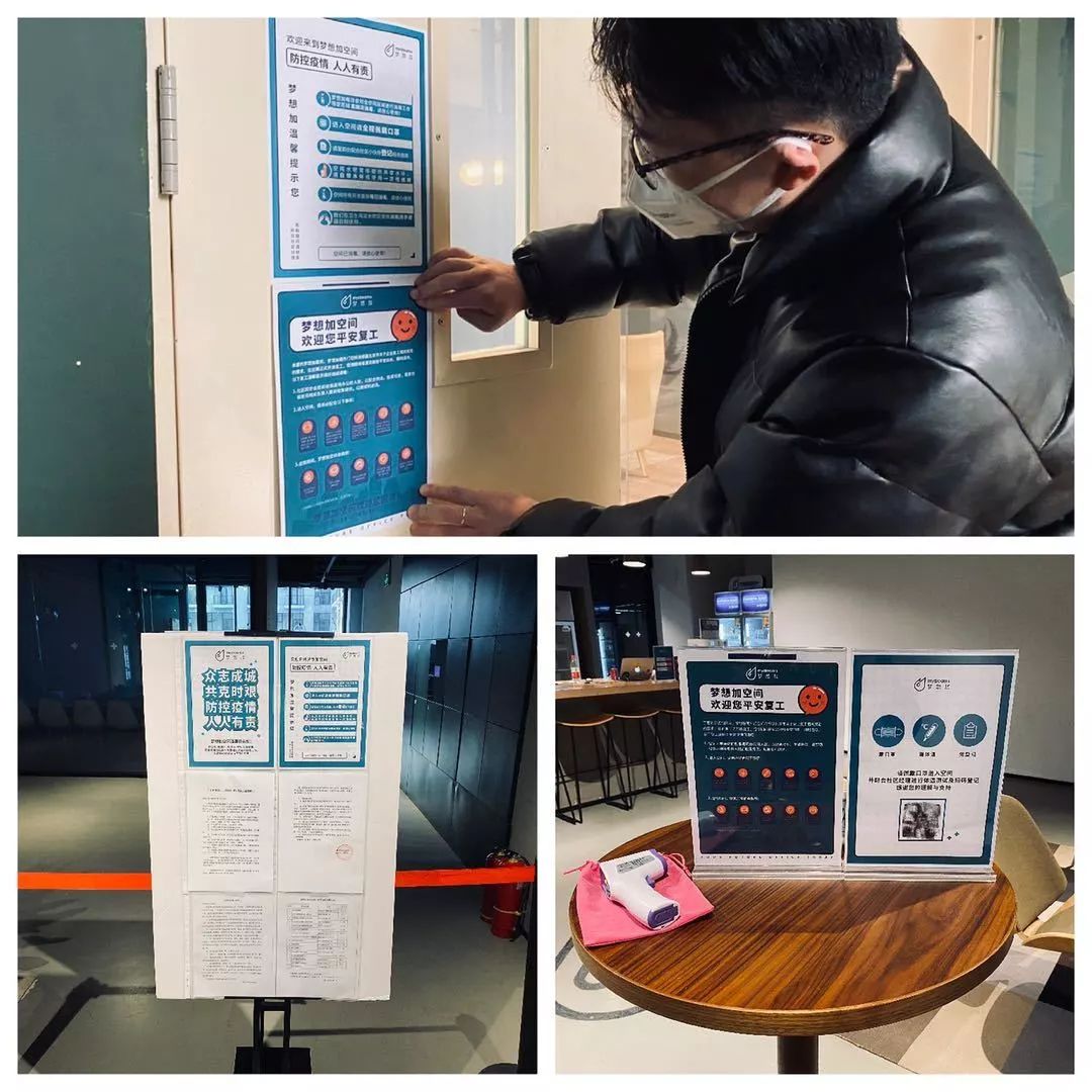 作为健康保护,平安上班的第一道防线,梦想加空间已经做好了充足的准备,势必站好平安复工的第一班岗。亲爱的梦想加居民,欢迎您回来~(目前梦想加空间全国部分空间正常运营,具体请详询您所在空间的社区经理)