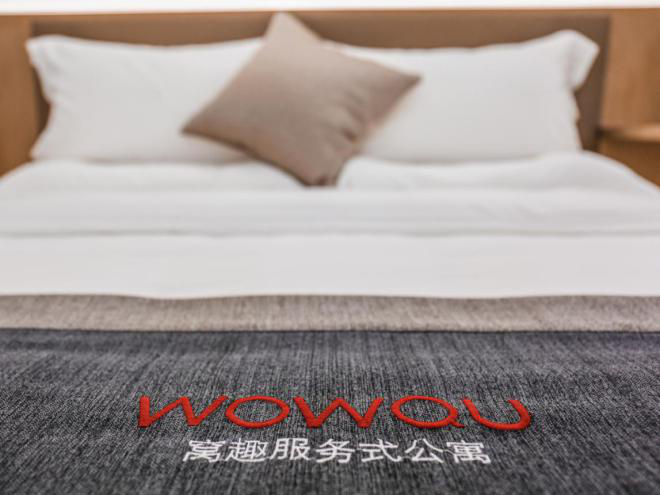 (窝趣服务式公寓佛山平洲玉器街店客房品牌色运用)