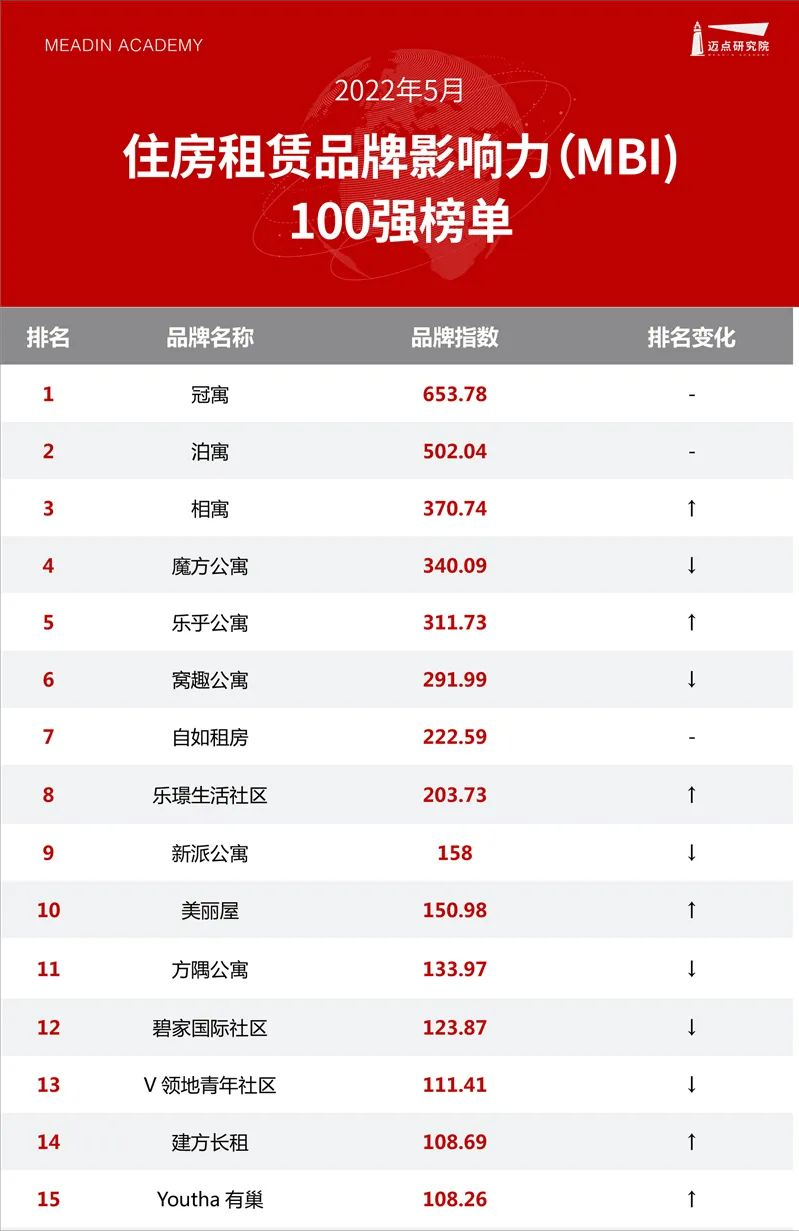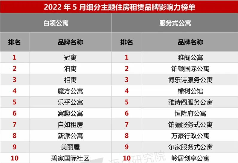 碧家位居迈点2022年5月细分主题住房租赁影响力白领公寓榜单TOP10