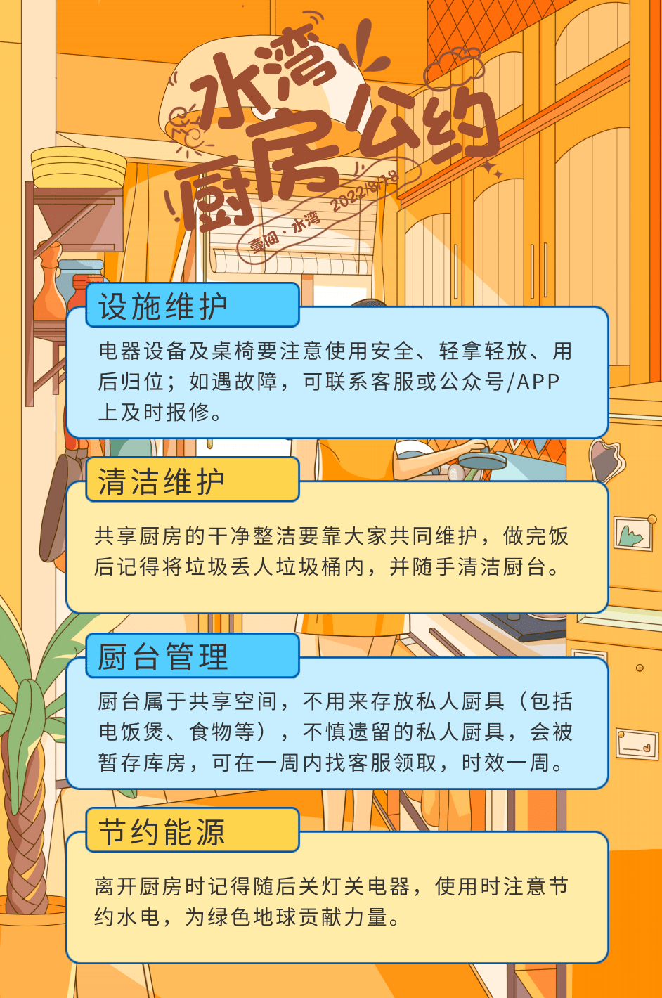 专属伙伴服务、设立楼栋伙伴、随处可见的贴纸入住提示、不同节日的贴心关怀,春夏秋冬的365天暖心呵护。生活的满仪式感和惊喜,从来不会缺席。暖心的服务,总是随时迸发出爱的火苗。