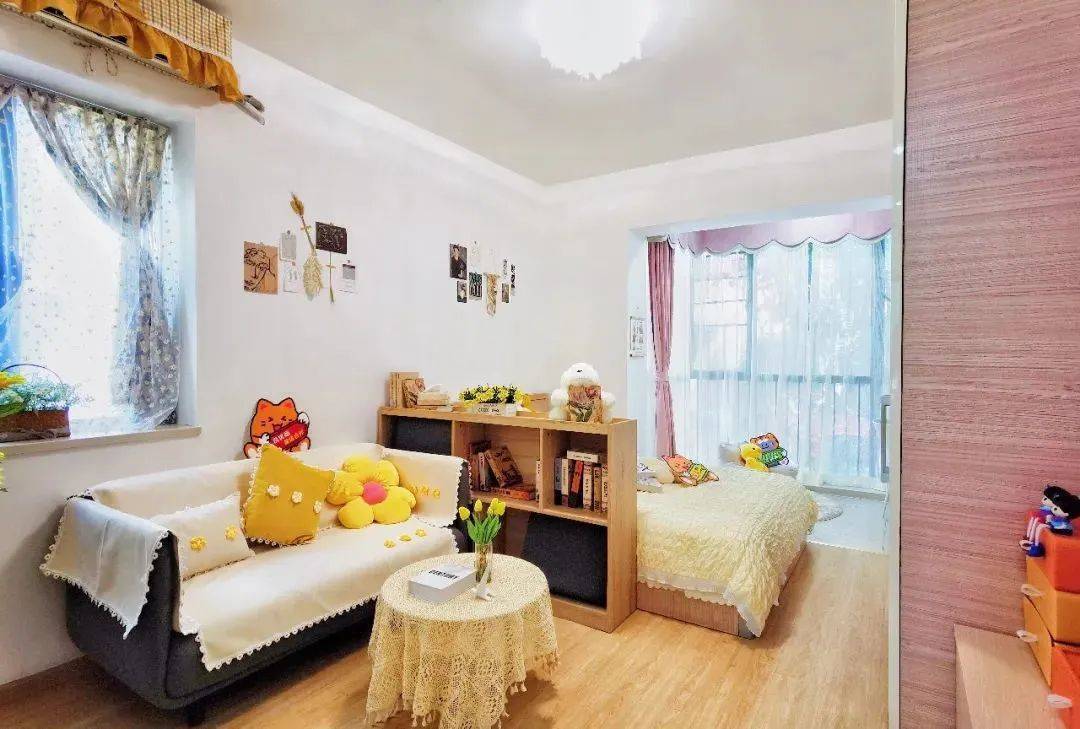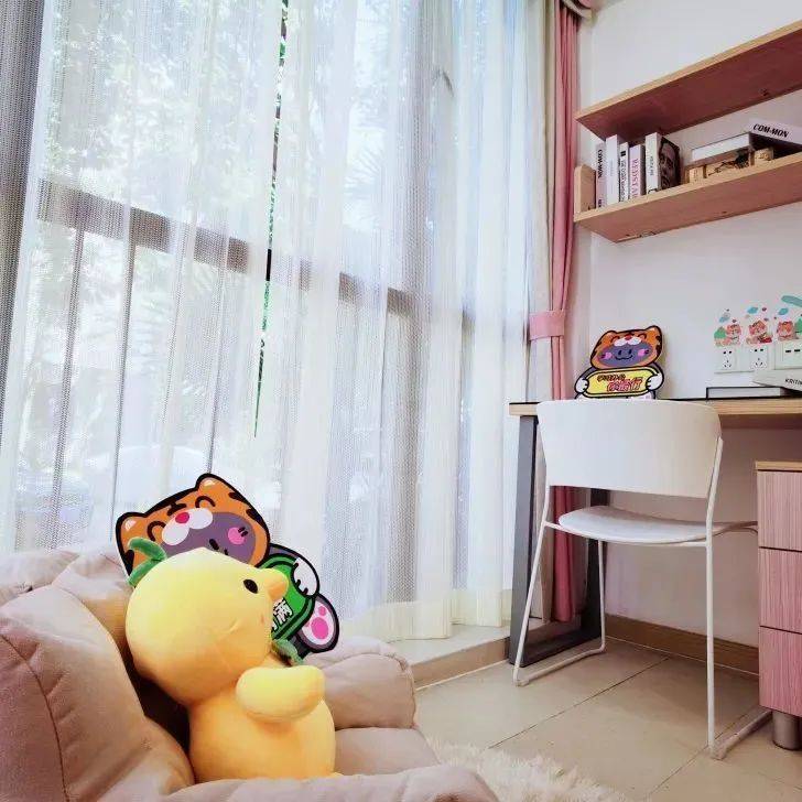 高颜值的女神房,藏了一屋子的快乐。推开房门就被一股青春活力气息包围,明亮的房间、软fufu的沙发、毛茸茸的玩偶、舒适的单人床、美丽鲜艳的绿植、可爱有趣的摆件,每一个角落都在向你迸发热情与活力;住进去的每一天都是活力girl~