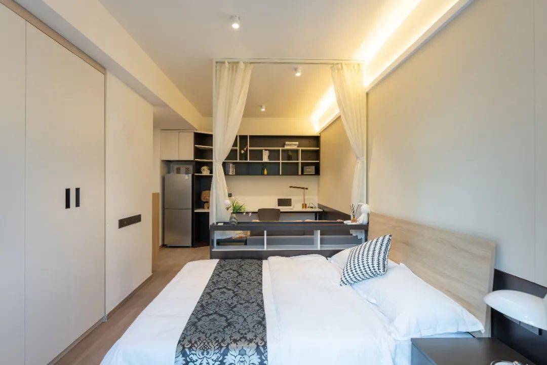 一间将精致感与情调感、颜值与舒适拉满的房间谁能不爱呢?简约明亮通透的房间,激起人一天的活力;暖黄的灯光打在柔软的床上,温馨又舒适;坐在柔软的地毯望着落地窗外的绿色美景,释放一整天的疲劳;随时随刻都能捕捉充满活力的美~