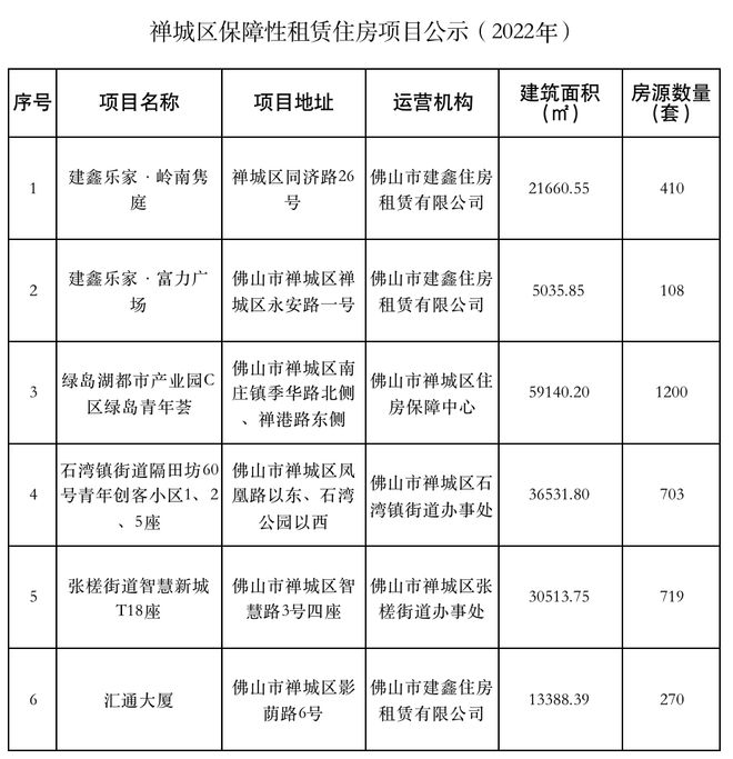 根据公示,禅城区2022年最新的保障性租赁住房项目共有6个,总合计提供房源3410套。