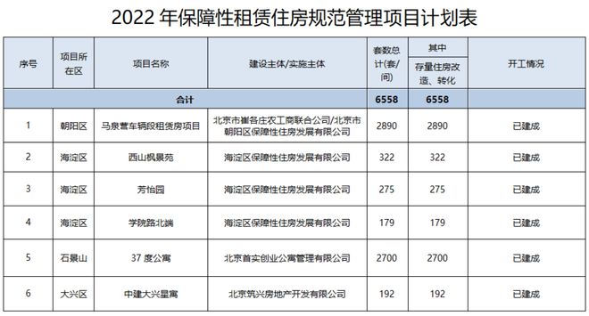 另外,筹集纳入规范管理保障性租赁住房项目6个、房源6558套,均为存量住房改造转化类项目。在这6个项目中,有3个项目位于海淀区。