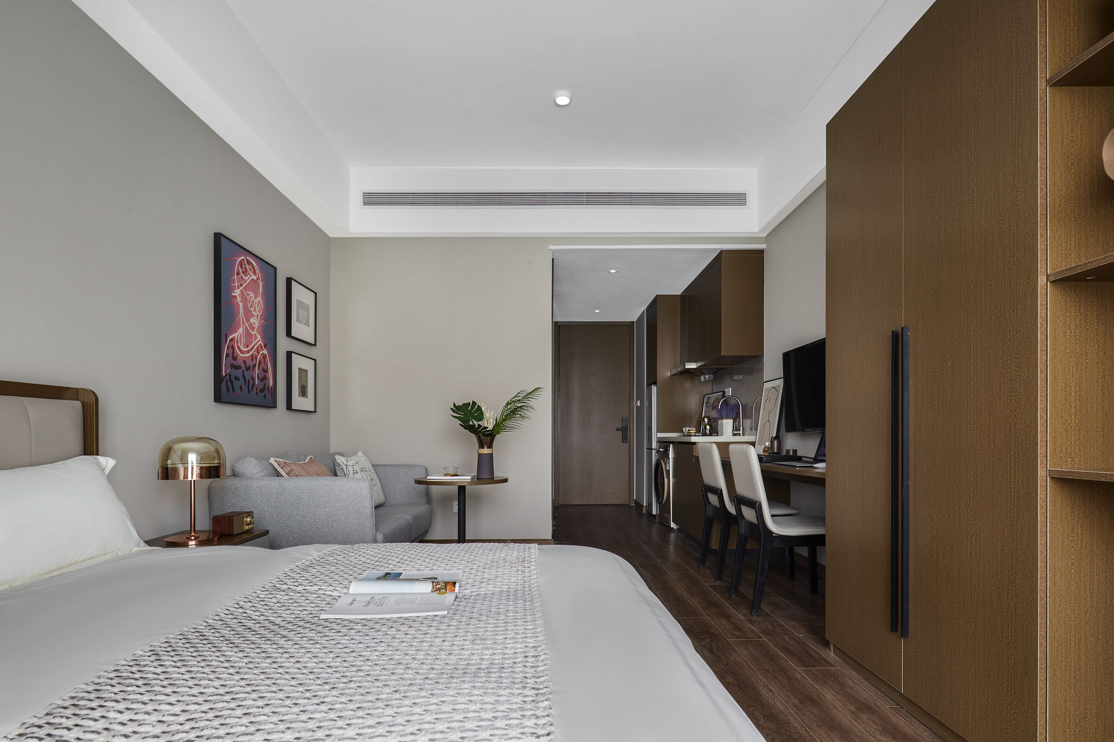服务配套:公寓配有24小时管家服务、24小时安保、无接触人脸识别系统、智能门锁、健康管家服务、全天驻场维修、公区保洁服务等