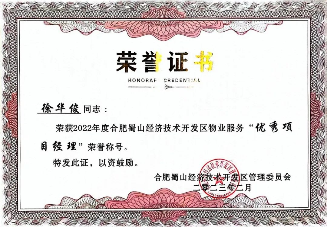 承寓·电商之家项目运营经理徐华俊获评“2022年度物业服务优秀项目经理”。