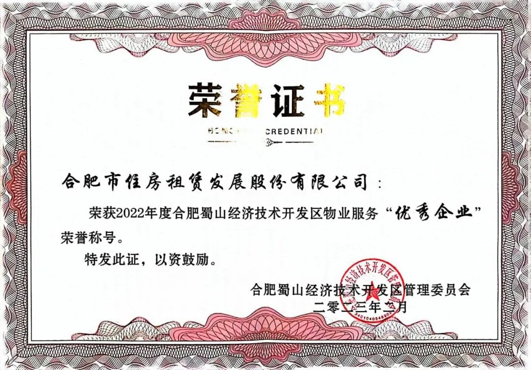 合房股份公司以高效的项目物业管理、卓越的服务管理水平获评“2022年度物业服务优秀企业”称号;