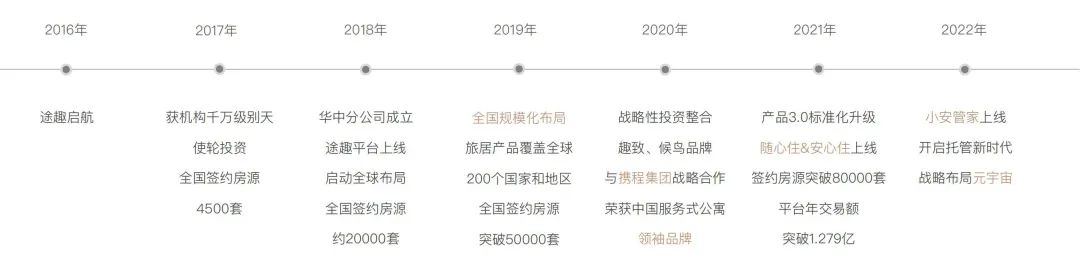 得益于此,途趣已经实现全国六大区域、30个城市的核心布局,签约房源突破80000套,为平台上百万会员提供服务。据透露,2022年途趣平台交易额突破1.279亿元。