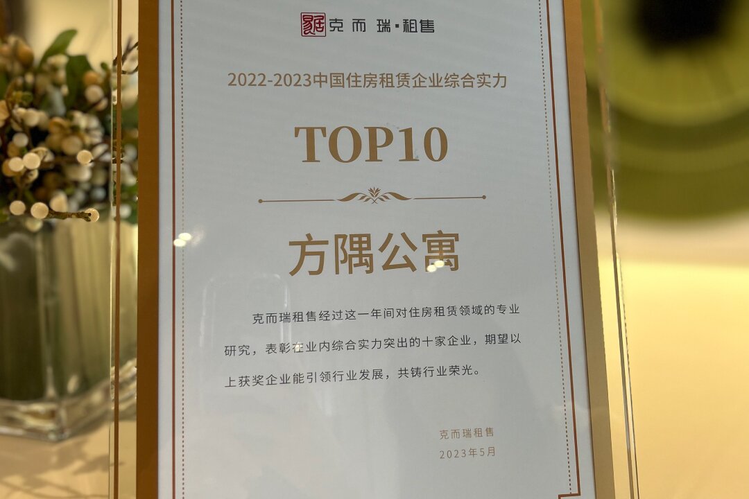 2023年5月26日,在由克而瑞租售主办的「乘风破浪正当时」第七届地新引力峰会上,方隅公寓荣获“2022-2023住房租赁企业综合实力TOP10”。这是经过行业相关协会、机构的全面考量和评估后,对方隅公寓的品牌力、稳健运营、经营服务等综合实力的专业肯定和认可。