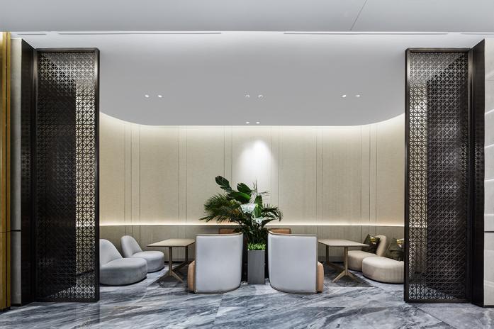 超300平的星级城市会客厅,以银影灰的大理石地面,铺就品质居所,以仪式感营造社区氛围,是休闲会客、办公商谈的最佳选择。休闲氧吧使用大篇幅的绿色语言,演绎全新的生态理念,营造平和典雅的自然空间感。在往常的会客区、台球厅、会议室等基础功能区,加入激光雕刻工艺的隔断设计。匠心设计的围合休闲空间,舒缓雅致交流私密性更强。美观之余,更展示了方隅公寓在产品上更深入的社交思考。