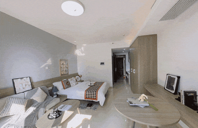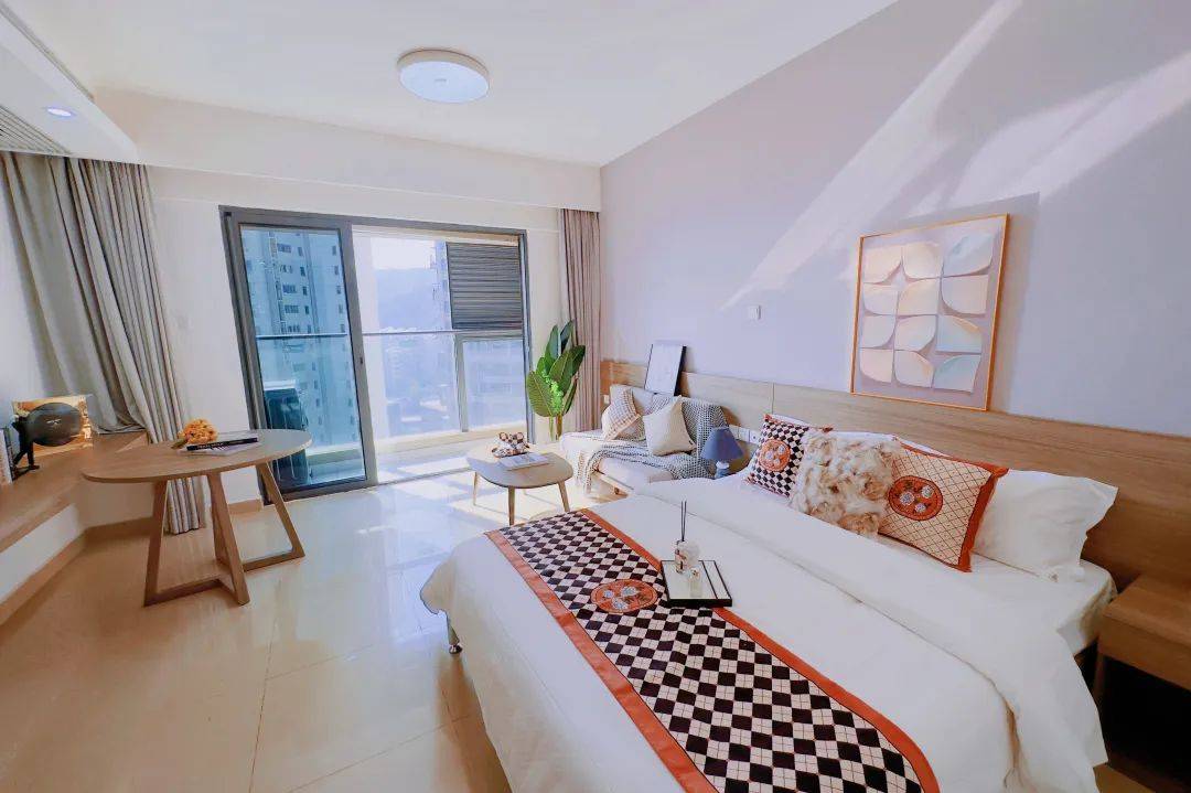 公寓全新推出42㎡「超大阳光大床房」简洁温馨,通透明亮,质感优雅,全景落地窗+独立阳台在家就能观山看海,让你悦享小资精致生活。