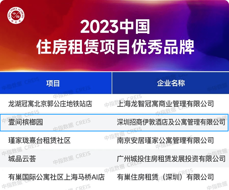 招商蛇口壹间公寓·槟榔园获评住房租赁项目优秀品牌TOP5!