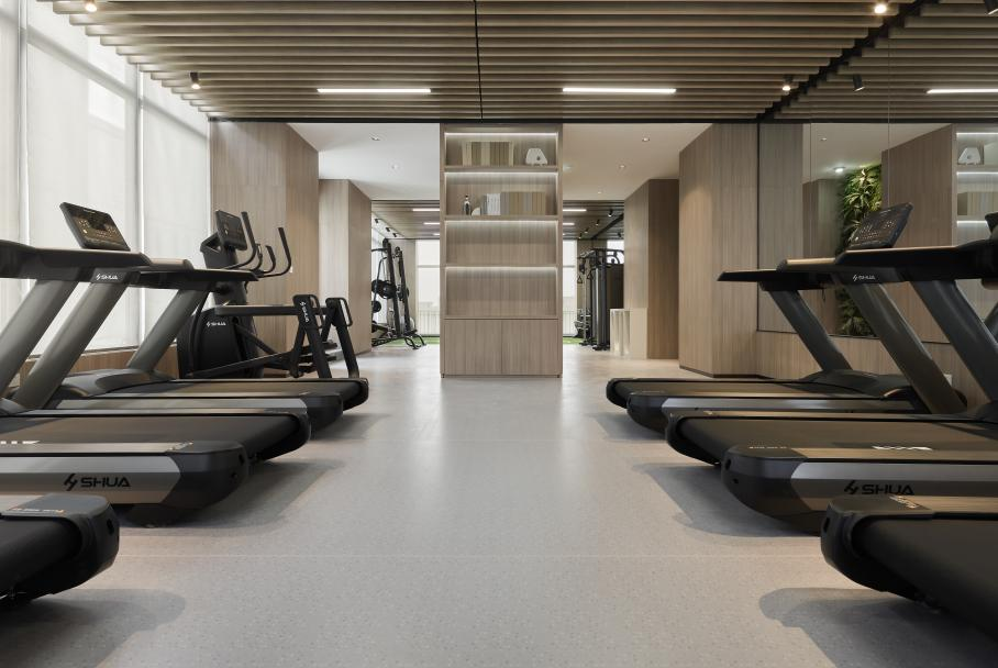 休憩之余,住客还可步行至健身房进行免费锻炼,健身房位于公寓楼上,2-3分钟即可到达,轻松实现家门口健身。同时,健身房拥有超大的健身空间,配套设施齐全,器材新颖,能够满足住户不同层次的健身需求,随时随地尽享酣畅淋漓。