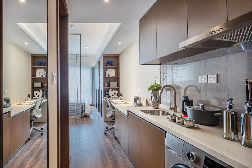细节层面,北京天峰方隅公寓也倾注了更多的设计巧思以彰显“高档一居租方隅”的战略定位。