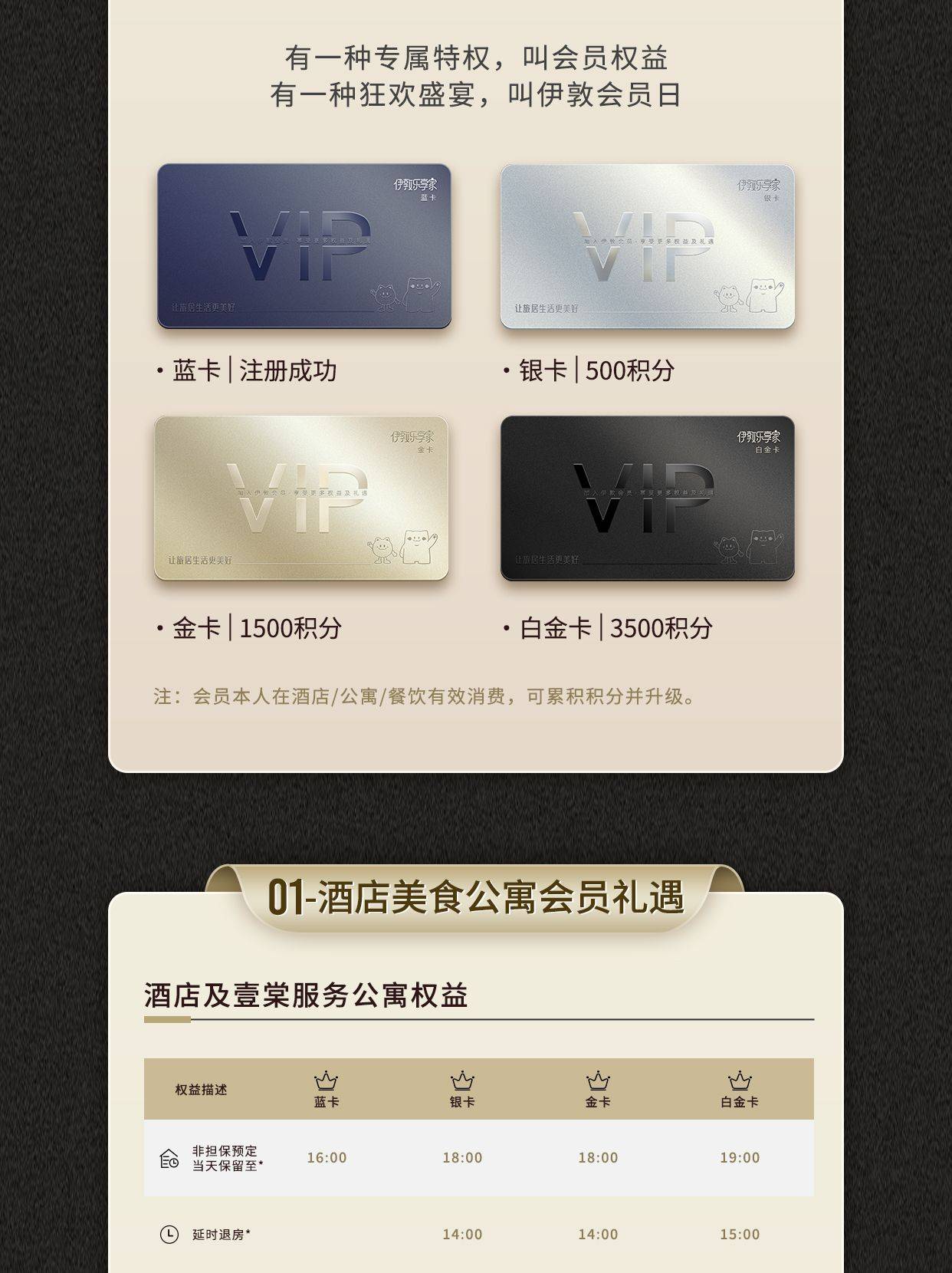 伊敦会员体系命名“伊敦乐享家”,传递以“乐”为生活方式,以“享”为生活态度,以“家”为心灵归属的理念。成为“伊敦乐享家”,即可乐享伊敦酒店、餐饮、公寓全业态会员权益,献礼每一位生活的旅居者。