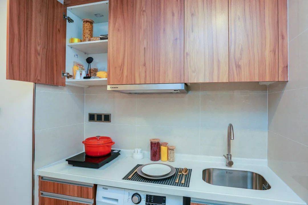 32㎡经典单床/38㎡大双床户型:全屋配备品牌定制家私家电,雅兰床垫、卡萨帝抽油烟机、美的空调、海尔洗衣机、欧派定制衣柜。空间开阔,设计巧妙,满屋好阳光,随心放松好心情。