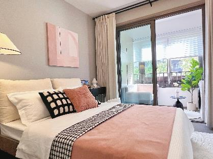 社区内 5栋住宅,呈排列式布局,楼间距开阔,确保日照充足。房间内部均为精装修,独立卫浴、24 小时热水、洗衣机、冰箱、沙发、衣柜、书桌、座椅、独立 Wi-Fi 光纤入户、智能门锁等一应俱全,租客可直接拎包入住,而且是民用水电,价格亲民。所以项目在设计初始,就为潜在的不同类型客户群体匠心设计,打造了3种不同的户型,28-30㎡、65㎡、95㎡,租金价格960-3280元/月,能够满足客户的丰富租住需求。社区花园、健身房等多功能休闲区域,让租客体验到独有的精致生活。同时,项目沿街配套设约3000㎡的商业街,社区周边生活服务设施完善,充分满足 “衣、食、住、行、娱 ” 的全方位需求。