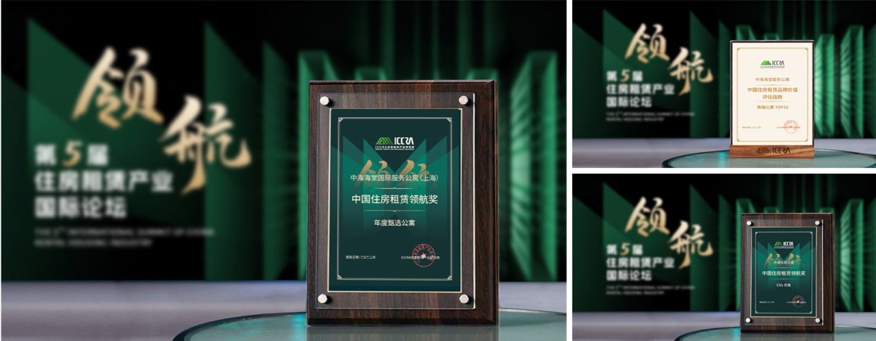 鉴于过往的沉淀积累和当下的实践创新成果,中海长租公寓在本次国际论坛中一举荣获多个奖项。其中,在企业社会责任评估上,中海长租公寓以全国逾80%的项目绿建认证,持续践行央企担当,树立绿色生活标杆,获选“中国住房租赁行业ESG先锋”荣誉;中海海堂旗舰品牌凭借在苏州、深圳、上海等城市落地项目的高品质产品力和好口碑服务力,于大会中获选“中国住房租赁高端公寓TOP10”;中海海堂国际服务公寓(上海)作为上海首个城市商业综合体旗舰级人居标杆项目,自上半年开业以来即得到行业及市场的高度认可及赞誉,此次大会评选中也以优秀的经营表现和产品设计获选“年度甄选公寓”。