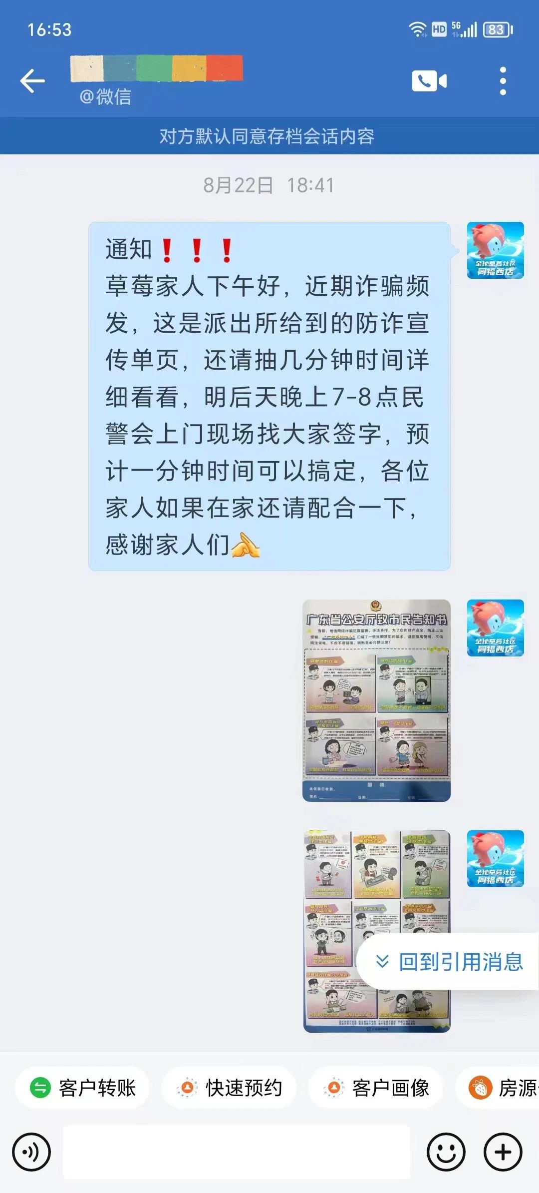 事情过后,海斌主动找到了片区民警上门为租客进行了反诈案例宣传。当租户了解到自己险些被骗时感到后怕,对海斌与民警表示了深深的感激。