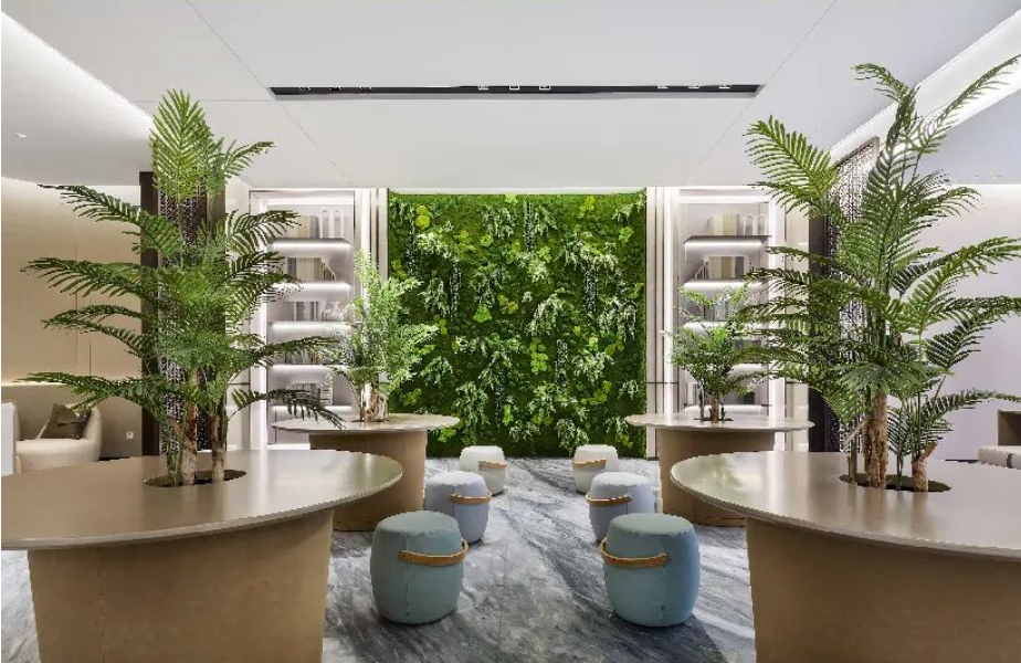 休闲氧吧使用大篇幅的绿色语言,演绎全新的生态理念,营造平和典难的白然空问感。