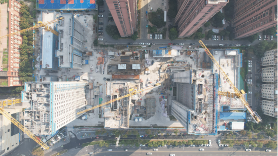 目前项目主体结构施工正有条不紊进行,其中1号楼结构封顶;其余楼栋主体结构正按施工计划有序推进。