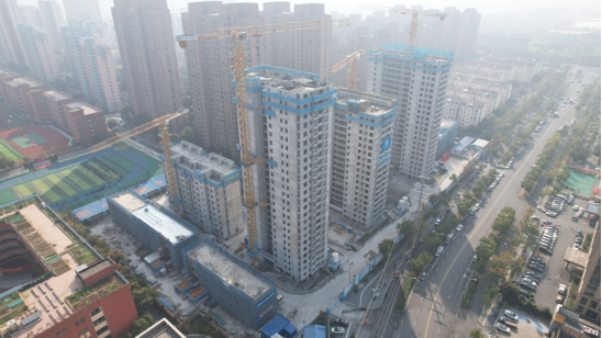 目前所有楼栋已完成主体结构封顶,项目整体进入二次结构装饰装修及配套工程施工阶段,供水、供电、燃气工程等工程正在有序推进。