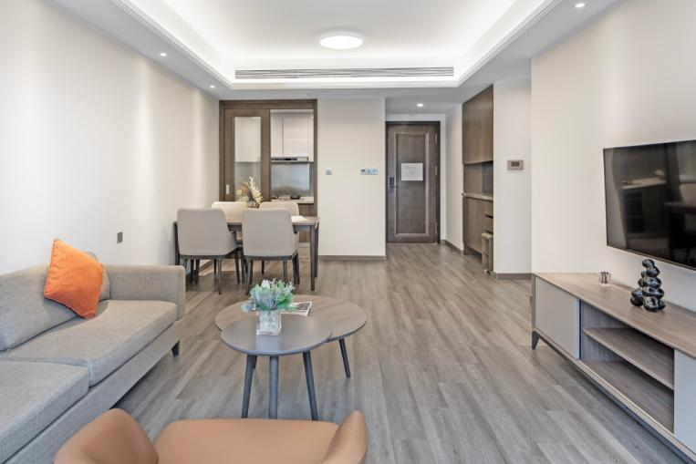【豪华单间】建面约42 m²,1室1厅1卫。户型方正拥有独立厨房,全屋地暖,采用空间一体化设计,全景落地窗,采光更充足。