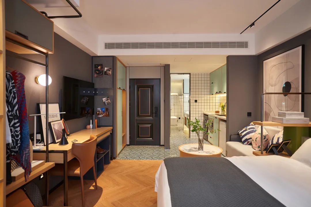 在产品层面,用共享理念构建多元场景。憬黎公寓酒店承载浪漫、自由、时尚的法式基因,沿袭欧洲“All In One”一体化设计风格,同时遵循开放式、功能型原则,在为城市新社交生活创造更多可能的同时,满足顾客全空间场域的舒适生活体验。
