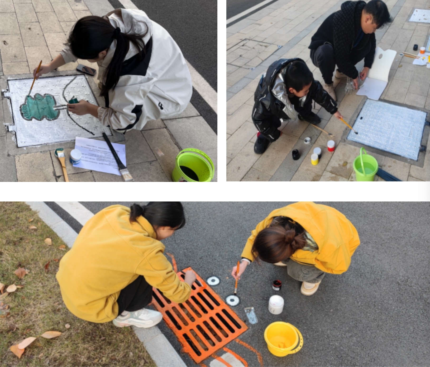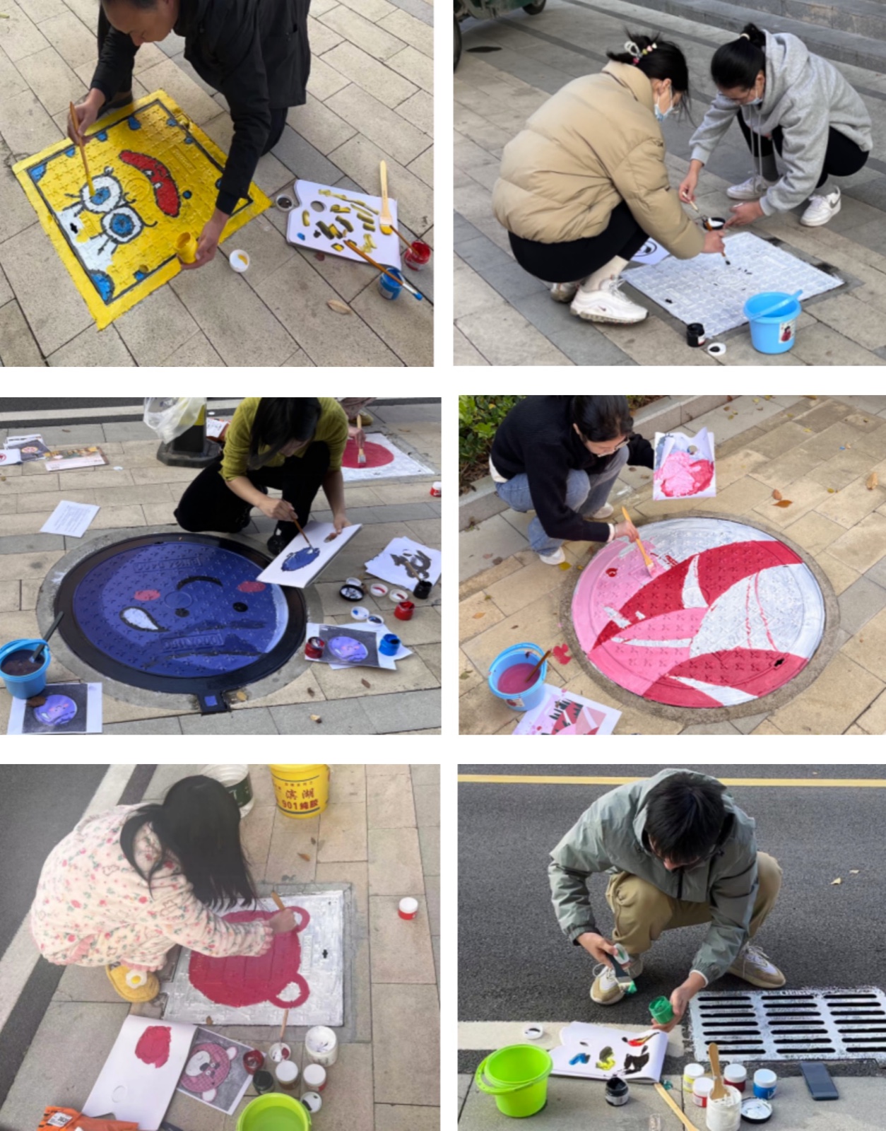 活动现场,承寓的小将先锋们做好相关准备工作,彩绘打底,细致组织、耐心指导承寓租户们为井盖绘图进行构思创作。承寓租户们负责调色、起形、描画轮廓,小将先锋们则负责协助租户上色,现场其乐融融。经过彩绘涂鸦,各类充满现代气息和文明气息的画作跃然在井盖上,描绘出承寓项目文明“风景线”。