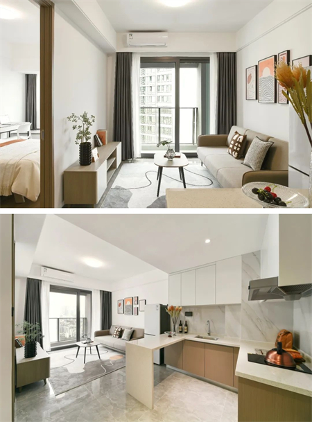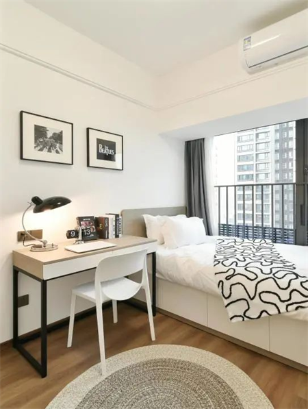 这所36m²的开放式单房,收纳空间布局巧妙合理,享受宽敞居住空间。还配备同色系品牌家私家电,形成了房间特殊的“局部小气候”,从设计细节即可感受高品质,获取美好生活体验,于壹栈·仕林臻邸的生活中感受一隅心安。