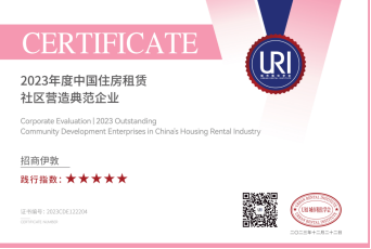 凭借出色的运营、温暖的服务和温馨的社区氛围营造,招商伊敦荣获URI城市租住学会颁发的“2023年度中国住房租赁社区营造典范企业”奖项。