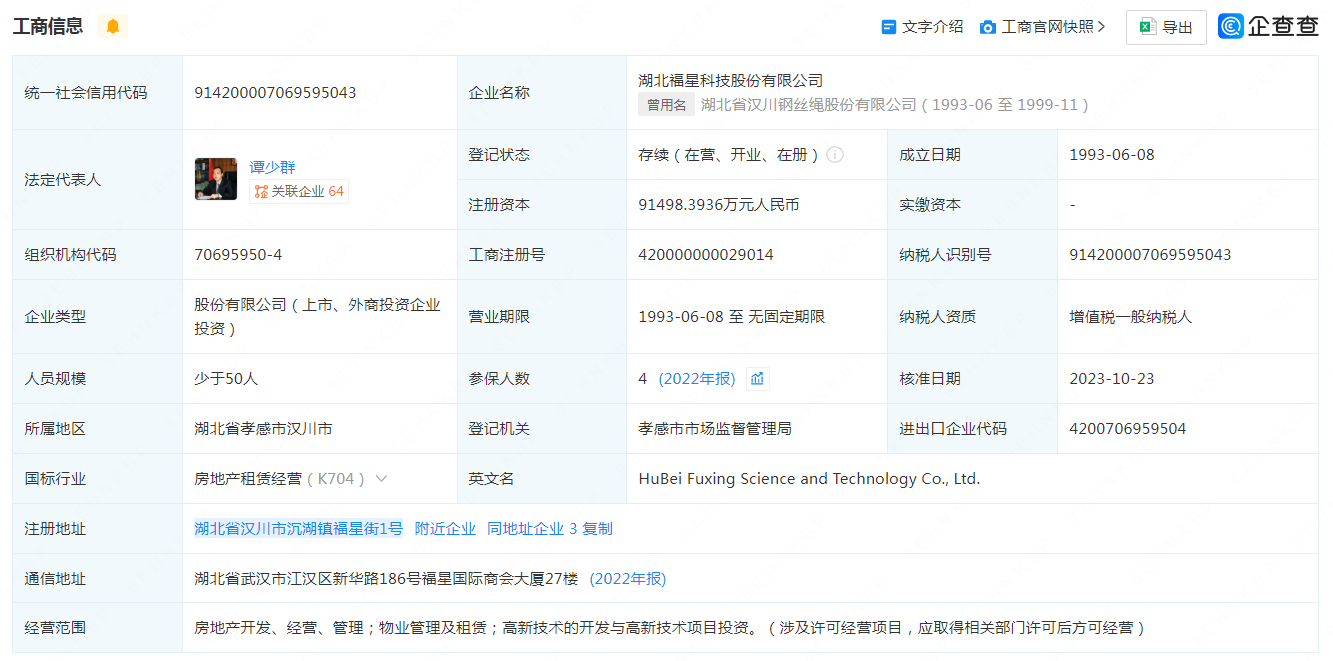 作为最早参与武汉市“三旧”改造的公司之一,经过40多年的发展,福星股份已成为国家大型企业、国家重点技术企业、湖北省“巨人工程”企业、A股上市公司。其业务板块主要涉及房地产和金属制品,主要营收来源于房地产业务,占比高达80%以上。
