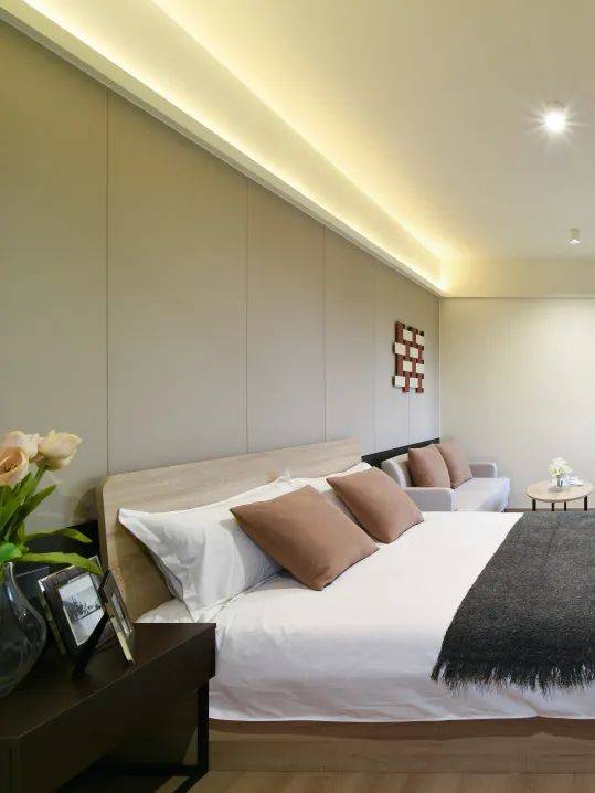 冬日的阳光总是在不经意间悄然溜走,冬天的居家时光舒适与否,往往体现在这些小小的细节处。本次焕新,壹间特别在房间添加了隐藏灯带,它是夜晚的一束暖光、是一本书籍的照明,也打造了家的温馨。