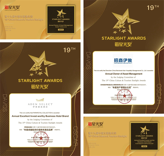 近日,2024 AHF亚洲酒店及旅游业论坛暨第十九届中国文旅星光奖颁奖典礼在上海举行,招商伊敦凭借出色的运营实力荣获“年度资产管理业主奖”,旗下伊敦睿选酒店品牌荣获“年度卓越投资价值商务酒店品牌”奖项,实力出圈。